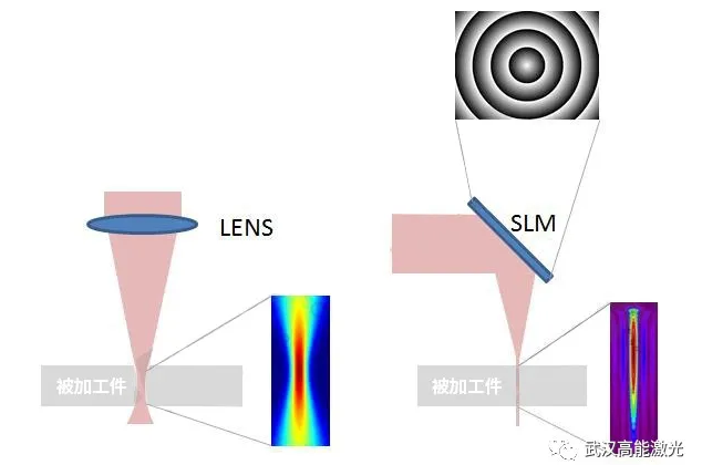 激光切割中,焦點大小和焦深是影響切割效果和效率的重要因素之一。光束經(jīng)短焦距聚焦鏡后光斑直徑相對較小、焦深短,焦點處功率密度很高,則有利于高速切割薄型材料,且切割精度高。經(jīng)長焦距透鏡后,焦點有較長的焦深,但焦點直徑相對較大,只要具有足夠功率密度,則比較適合切割厚工件。