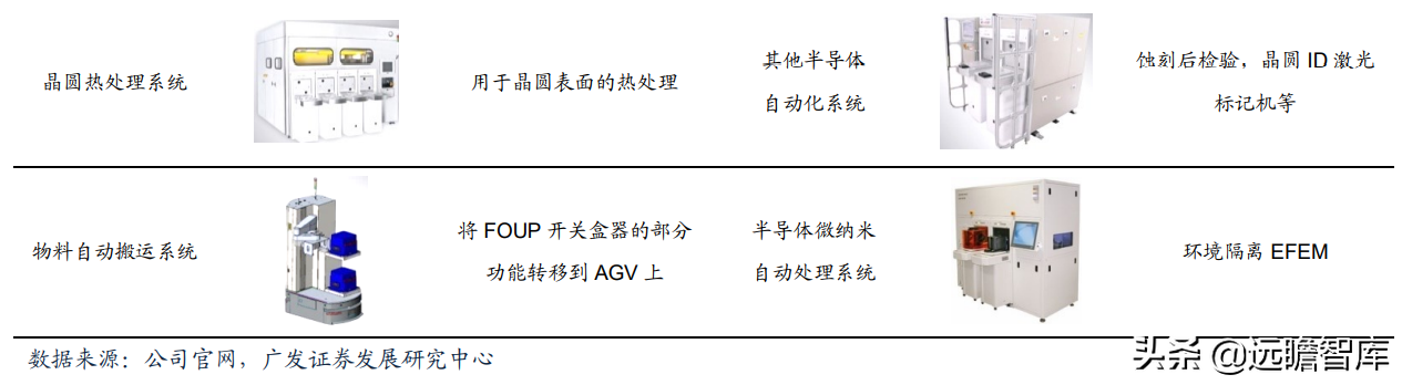 大族富創(chuàng)得為國內(nèi)半導(dǎo)體生產(chǎn)線自動化提供流體整合方案,主要產(chǎn)品為晶圓傳輸系統(tǒng)、光罩傳輸系統(tǒng)、晶圓熱處理系統(tǒng)、半導(dǎo)體微納米自動處理系統(tǒng)、物料自動搬運存儲系統(tǒng)和其他半導(dǎo)體自動化系統(tǒng)。