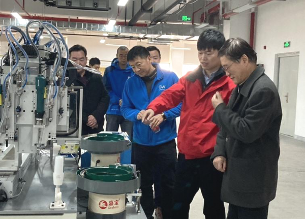 在項(xiàng)目現(xiàn)場,常務(wù)副總劉進(jìn)輝介紹到,我們首期光學(xué)模塊封裝示范線,按照新一代智能化工廠標(biāo)準(zhǔn)建設(shè),全程用裝備有自動導(dǎo)航裝置AGV小車,沿規(guī)定的行駛路徑,貫串封裝機(jī)械手、裝配機(jī)器人,根據(jù)信號匹配至光纖焊接人員,完成整個光學(xué)模塊的作業(yè),此生產(chǎn)線還能根據(jù)不同型號的模塊部件和手工操作的效率柔性調(diào)配?;緦?shí)現(xiàn)“少人”化作業(yè),僅20名左右技術(shù)工人,就可實(shí)現(xiàn)每天300個光模塊產(chǎn)能,不但能滿足本基地的組裝使用,還能向其他廠區(qū)供貨。