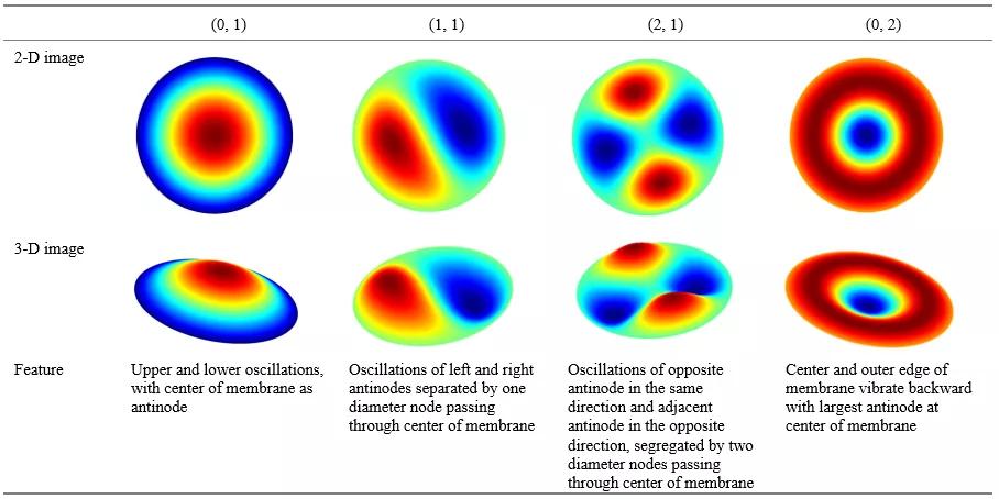 基于貝塞爾方程分析了熔池的振動模式,并對熔池中常見的三維圖像進(jìn)行了模擬。(0, 1)、(1, 1) ,、(2, 1), (0, 2)的激光點陣圖像。通過結(jié)構(gòu)激光光學(xué)測量仿真,得到了不同時間的振蕩模式?;诩す恻c陣圖像分析了靜止GTA熔池的振蕩模式。