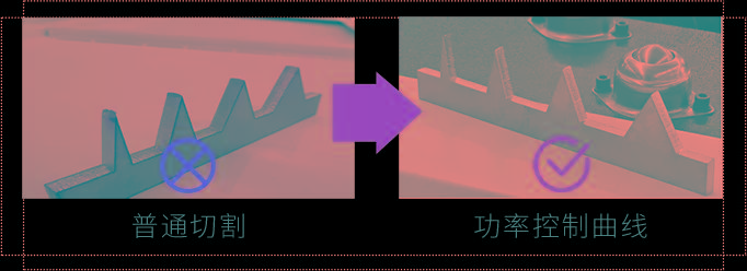根據(jù)切割輪廓自動(dòng)調(diào)整功率、速度、占空比、焦點(diǎn)位置等關(guān)鍵參數(shù),保證切割質(zhì)量及加工效率。(該功能通過(guò)自研系統(tǒng)對(duì)激光器出光功率的無(wú)級(jí)調(diào)節(jié)、激光頭焦點(diǎn)的實(shí)時(shí)控制,完美結(jié)合而實(shí)現(xiàn)。)