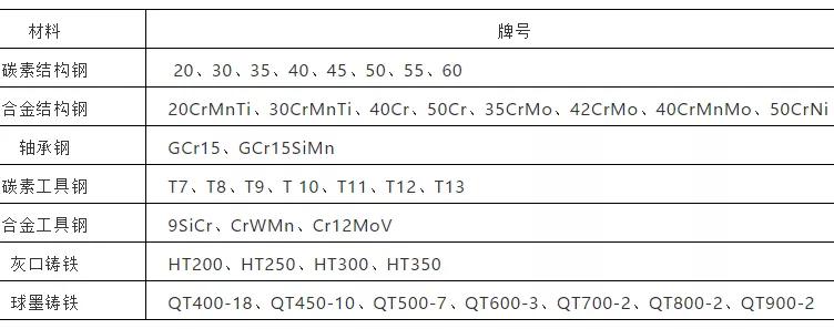 (2)激光淬火適用范圍