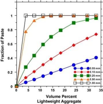 不同水遷移距離和LWA體積百分比對保護(hù)水泥漿體體積的影響。