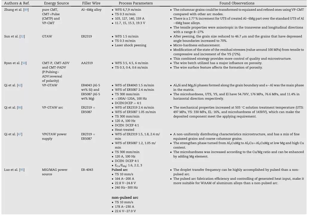 來源:Enhancing the properties of aluminum alloys fabricated using wire +arc additive manufacturing technique - A review,Journal of MaterialsResearch and Technology,doi.org/10.1016/j.jmrt.2021.04.076