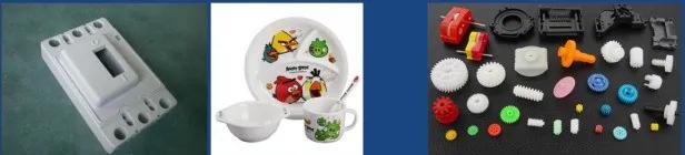 其中熱固性塑料為化學(xué)分子結(jié)構(gòu),一般是一次成型。如上左圖中開關(guān)面板和幼兒用的碗都是熱固性塑料加工而成的,它們具有耐高溫的特性,質(zhì)地堅(jiān)硬、難以熔化,加熱后也不再軟化,過度加熱直接分解。