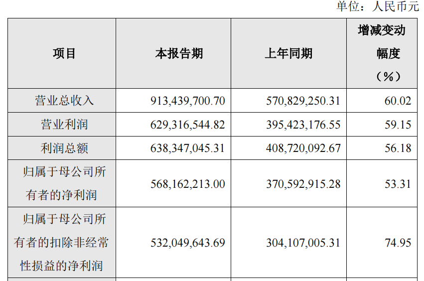 2021 年實現營收9.13億元,同比增長60.02%;營業(yè)利潤6.29億元,同比增長59.15%;利潤總額6.38億元,同比增長56.18%;歸屬于母公司所有者的凈利潤 5.68億元,同比增長53.31%;歸屬于母公司所有者的扣除非經常性損益的凈利潤5.32億元,同比增長74.95%。