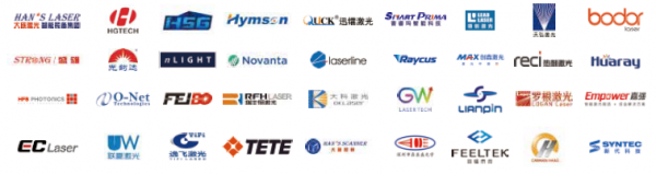 大族、華工、宏山、海目星、迅鐳、智能普?,?、領(lǐng)創(chuàng)、天弘、邦德、盛雄、光韻達(dá)、恩耐、Novanta、利澤萊恩、銳科、創(chuàng)鑫、熱刺、飛博、瑞豐恒、大科、聯(lián)品、羅根、嘉強(qiáng)、聯(lián)贏、逸飛、泰德、大族思特、鼎鑫盛、新代科技等、睿達(dá)、飛越、歐斯普瑞、超越、華日、金威刻、大鵬、盛鐳、漢威、銘鐳、錦帛方、智博泰克、鐳麥、荷佐里、活力、韻騰、興弘、慧之光、嘉泰、瑞鐵、萬(wàn)順興、OPTOMAN、致凱捷、東下田、彩煌等。