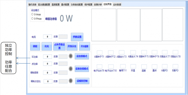 (1)兩路模擬電壓分別控制激光器“點(diǎn)”和“環(huán)”部分出光功率,可以在工作過(guò)程中實(shí)時(shí)變化功率