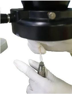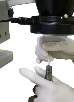 ②.把棉簽或擦拭紙放在石英柱端面上, 移動(dòng)棉簽或擦拭紙,直到石英柱膜面干凈。當(dāng)石英柱通光面大面積被污染時(shí),應(yīng)先用棉簽沾酒精初步清潔一遍,用力盡可能輕,防止造成膜層劃傷;將較大顆粒的臟污去除后,再細(xì)擦局部。細(xì)擦石英柱通光面,棉棒潔凈,擦拭時(shí)應(yīng)從同一方向逐步擦拭,防止交叉污染,注意細(xì)擦?xí)r酒精量不可過(guò)多,以免產(chǎn)生印跡殘留。