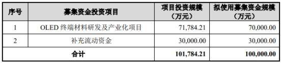 萊特光電本次發(fā)行募集資金總額8.87億元;扣除發(fā)行費(fèi)用后,募集資金凈額為8.05億元。萊特光電最終募集資金凈額比原計(jì)劃少1.95億元。萊特光電于2022年3月14日披露的招股說明書顯示,公司擬募集資金10.00億元,分別用于OLED終端材料研發(fā)及產(chǎn)業(yè)化項(xiàng)目、補(bǔ)充流動(dòng)資金。