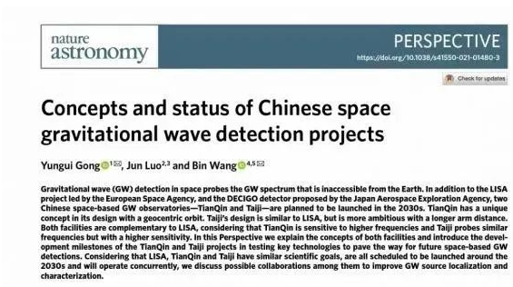 2021年9月,華中科技大學(xué)天琴引力波理論團(tuán)隊(duì)在國際最權(quán)威天文刊物之一——《自然》(Nature)雜志子刊《自然-天文》(Nature Astronomy)上刊文,向國際學(xué)界發(fā)出中國聲音,全方位地介紹中國的“天琴”及其中國空間引力波探測(cè)計(jì)劃的成就,這也是中國科學(xué)家首次在頂尖國際雜志對(duì)該計(jì)劃做完整系統(tǒng)的介紹。