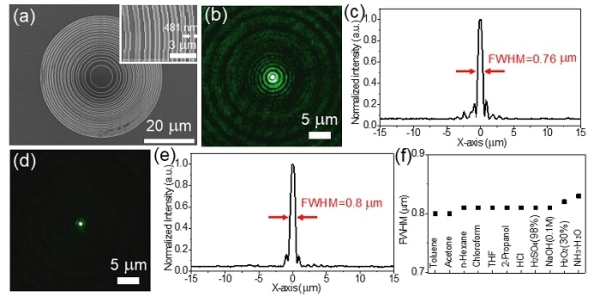 圖4.飛秒激光直寫具有耐熱性和耐溶劑性的微型菲涅爾透鏡器件