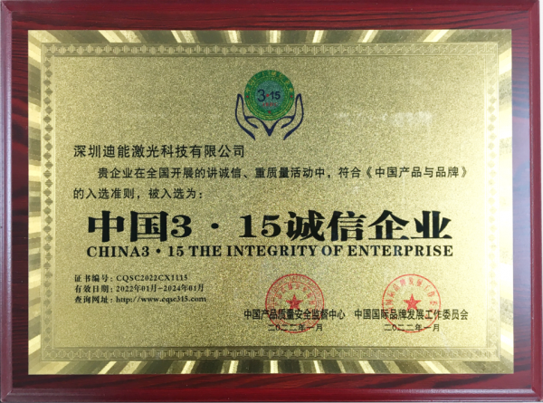 2022年1月,瑞士百超集團(tuán)全資子公司百超迪能激光在全國開展的講誠信、重質(zhì)量的活動(dòng)中,符合《中國產(chǎn)品與品牌》的入選準(zhǔn)則,被入選中國3·15誠信企業(yè)。百超迪能榮獲“中國3·15誠信企業(yè)”,這既是廣大消費(fèi)者對百超迪能產(chǎn)品質(zhì)量的認(rèn)可,也標(biāo)志著百超迪能企業(yè)品牌價(jià)值取得新突破。