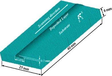 LC技術(shù)是一個(gè)復(fù)雜的過(guò)程,通過(guò)實(shí)驗(yàn)研究無(wú)法理解激光與材料的相互作用、粉末流動(dòng)、熔池和傳熱模式。因此,使用基于數(shù)值的模型來(lái)解決復(fù)雜的數(shù)學(xué)模型。這些模型的結(jié)果通常是精確的,可以用于實(shí)現(xiàn)高質(zhì)量的CLAD。數(shù)值模型通常分為三個(gè)部分:熔池、熔覆特征和粉末流動(dòng)動(dòng)力學(xué)。為了改善包層特性,Anas等人開(kāi)發(fā)了一個(gè)數(shù)值模型,使用COMSOL Multiphysics優(yōu)化包層特性,并將其與實(shí)驗(yàn)結(jié)果進(jìn)行了比較。結(jié)果表明,長(zhǎng)寬比誤差為13.95%,包層角誤差為6.10%,稀釋率誤差為1.72%。LC-HEAC的熱動(dòng)力學(xué)和熱機(jī)械行為與普通覆層不同,并通過(guò)數(shù)值模擬進(jìn)行了研究。