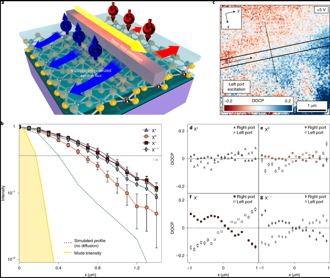 這意味著從二硒化鎢發(fā)出的光將沿著首選方向耦合到波導中。該團隊還可以通過向系統(tǒng)添加電子來打開和關閉這種偏置耦合,從而在微米級的長度尺度上創(chuàng)建可調(diào)發(fā)射路由器。