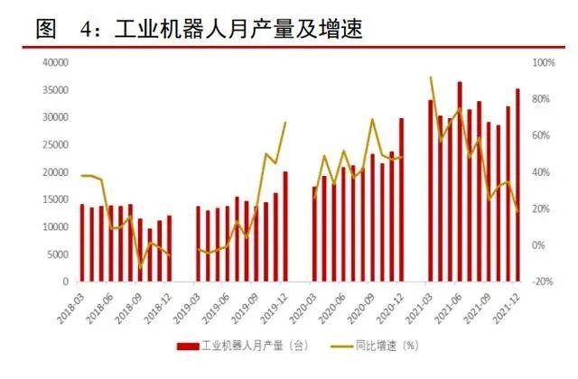 此外,國家持續(xù)大力推動(dòng)智能制造行業(yè)的發(fā)展,不斷發(fā)布政策規(guī)劃和行業(yè)標(biāo)準(zhǔn)有效 促進(jìn)行業(yè)發(fā)展和技術(shù)提升。受益于行業(yè)的快速發(fā)展,細(xì)分工業(yè)自動(dòng)化領(lǐng)域受關(guān)注度持續(xù) 增加。疫情后,工業(yè)自動(dòng)化生產(chǎn)優(yōu)勢明顯,加快制造業(yè)自動(dòng)化轉(zhuǎn)型。疊加國內(nèi)人口老齡 化問題深化、人工成本不斷提高,工業(yè)自動(dòng)化生產(chǎn)相關(guān)產(chǎn)品需求不斷增加。2021 年 12 月工業(yè)機(jī)器人產(chǎn)量為 35175 臺(tái),同比增長 18.41%,環(huán)比增長 10.21%;2022 年 1-2 月, 工業(yè)機(jī)器人累計(jì)產(chǎn)量為 76381 臺(tái),同比增長 68.12%,同比維持較高增速;1-2 月平均產(chǎn) 量約為 38190 臺(tái),下游制造業(yè)需求不斷增加。