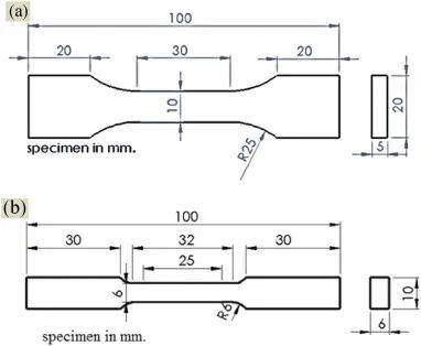 圖10 ASTM標(biāo)準(zhǔn)(a)ASTM:E466-07和(b)ASTM E8/E8M的疲勞試驗試樣尺寸。