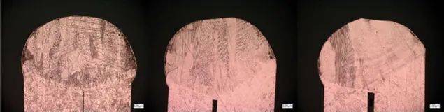 Bar winding motors已成為電動汽車傳動系統(tǒng)的事實標準。它們?nèi)〈藰藴实膶?dǎo)線繞組,采用了更高的填充系數(shù)設(shè)計,提高了電氣效率和熱傳導(dǎo)。它們是通過將預(yù)制銅線插入定子槽中制造的。預(yù)制件或多或少呈U形,因此當(dāng)插入導(dǎo)線時,它們各自會留下兩個未連接的端部,從定子伸出。所有突出的電線都必須連接起來,而且速度和質(zhì)量同樣重要。對于這種應(yīng)用,將熱影響區(qū)降至最低也很重要,因為過多的熱量會降低絕緣性能。如圖3所示,藍色激光快速焊接1 mm×2 mm接頭,沒有缺陷,對組件的熱影響很小——所有這些都比TIG或高功率紅外激光替代品有所改進。