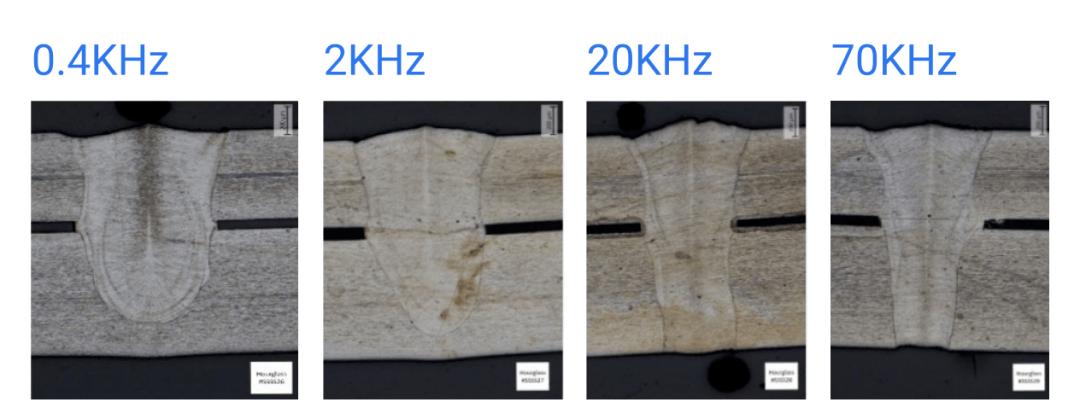 一旦你設(shè)定了光束的形狀。你就可以設(shè)置激光束在不同的速度下產(chǎn)生不同的形狀來(lái),這就是我們所說的形狀的頻率。速度影響著焊縫的特征,并且,如果優(yōu)化不到位的話,則會(huì)造成諸如飛濺之類的缺陷,如頻率為50MHz的時(shí)候,這一速度非常快,以至于它有點(diǎn)像準(zhǔn)靜態(tài)的形狀,并將會(huì)產(chǎn)生同KHZ或Hz頻率相比完全不同的效果。