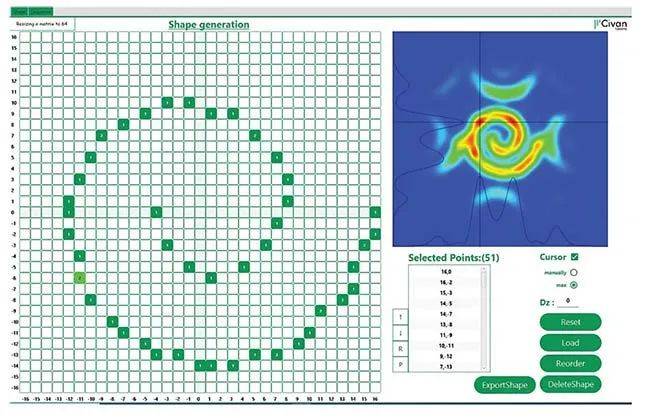 圖5 出現(xiàn)的動態(tài)光束調(diào)整是伴隨著軟件的快速發(fā)展使得用戶可以設(shè)計光學(xué)形狀并進行優(yōu)化以滿足特定的焊接應(yīng)用。通過點擊用戶操作界面,例如,用戶可以設(shè)計出想象的光學(xué)形狀和排列來,非常容易地評估不同形狀以找到特定焊接結(jié)果所需要地最優(yōu)化地光學(xué)形狀來。