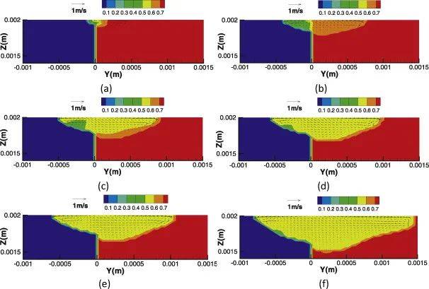 1.假定熔融金屬為牛頓型且不可壓縮,并使用Boussinesq近似來(lái)解釋由于溫度和濃度變化引起的密度變化。流體是層流的。