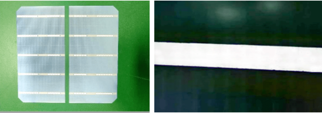常規(guī)劃片機(jī)利用脈沖激光在電池的背面加工出一條貫穿表面的切割道,再采用機(jī)械法將電池片沿著切割道掰開,不可避免的存在兩個弊端:一是激光熱燒蝕工藝會在切割面留下大量熱損傷,降低電池片的機(jī)械強(qiáng)度;二是對于大尺寸硅片,非常容易破片。超小電池片間距(零間距,甚至負(fù)間距)、大尺寸硅片和超低溫電池等工藝路線的誕生,常規(guī)激光劃裂工藝難以滿足超高的加工品質(zhì)要求,硅片激光無損裂片應(yīng)運(yùn)而生。