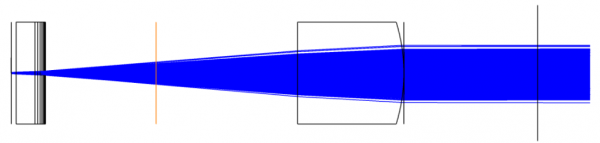 假設(shè)彎月型慢軸準(zhǔn)直鏡和普通慢軸準(zhǔn)直鏡有效焦距相同,使用彎月型慢軸準(zhǔn)直鏡的系統(tǒng)總長(zhǎng)度相較使用常規(guī)慢軸準(zhǔn)直鏡的系統(tǒng)小很多。彎月型慢軸準(zhǔn)直鏡可以幫助實(shí)現(xiàn)具有更小尺寸的緊湊型設(shè)計(jì)。
