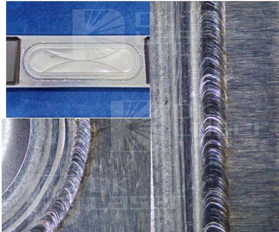 其次,芯徑為14μm的單模激光器的熔深穩(wěn)定。在-3~2.5mm的離焦量范圍內(nèi),熔深變化只有±0.25mm,可以完美地解決由于熔深不穩(wěn)定造成的虛焊問(wèn)題,具有更寬的工藝窗口。