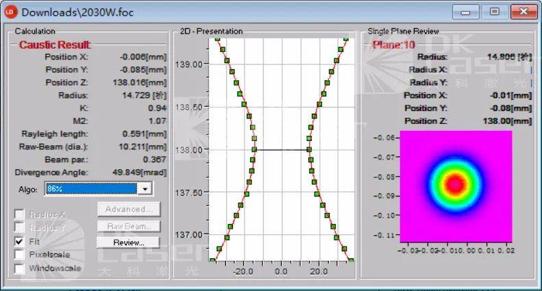 2kW輸出時(shí)光束質(zhì)量M2為1.07