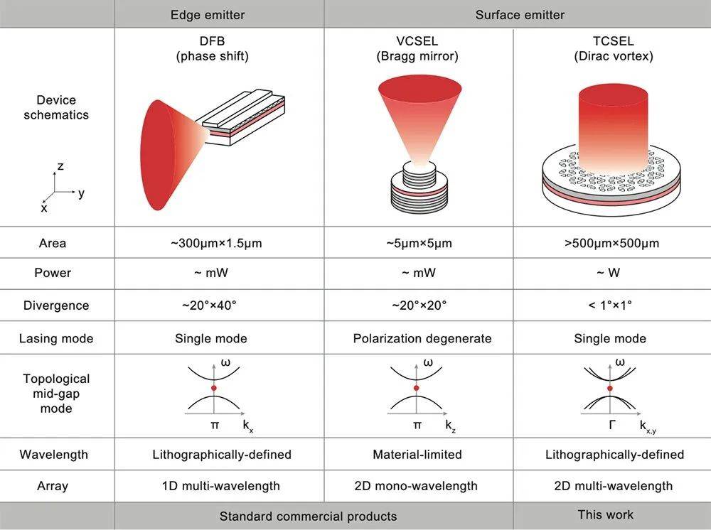 最近,同一團(tuán)隊(duì)將他們的拓?fù)淝粦?yīng)用于表面發(fā)射激光器,并發(fā)明了拓?fù)淝槐砻姘l(fā)射激光器(TCSEL),其性能可以遠(yuǎn)遠(yuǎn)超過商業(yè)同行。