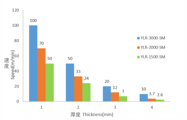 圖表1. 不同功率YLR單模激光器不銹鋼氮?dú)馇懈钏俣葘?duì)比