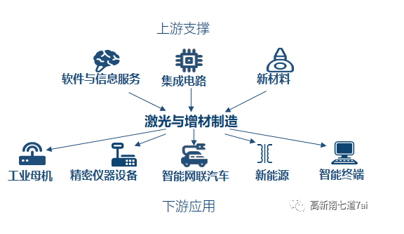 激光與增材制造是重要的核心關(guān)鍵產(chǎn)業(yè)、基礎(chǔ)性產(chǎn)業(yè)和引領(lǐng)性產(chǎn)業(yè),可有力推動(dòng)和引領(lǐng)經(jīng)濟(jì)產(chǎn)業(yè)發(fā)展和轉(zhuǎn)型升級(jí)。作為先進(jìn)制造業(yè)的“硬”底座,激光與增材制造產(chǎn)業(yè)鏈龐大,廣泛支撐下游半導(dǎo)體與集成電路、智能終端、網(wǎng)絡(luò)與通訊、超高清視頻顯示、新能源、智能網(wǎng)聯(lián)汽車(chē)、高端醫(yī)療器械、智能機(jī)器人、工業(yè)母機(jī)、精密儀器設(shè)備等行業(yè)發(fā)展。
