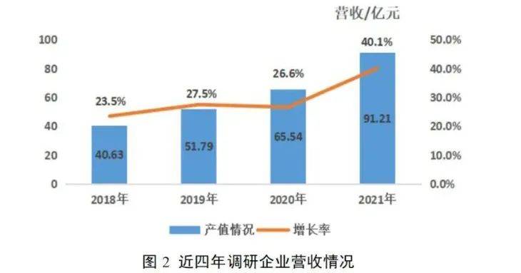 此次參與調(diào)研50家企業(yè)總營(yíng)收達(dá)到91.21億元,相比2020年65.54億元增長(zhǎng)39.2%,近四年的平均增長(zhǎng)率為29.2%,與整體產(chǎn)業(yè)發(fā)展趨勢(shì)總體保持一致。