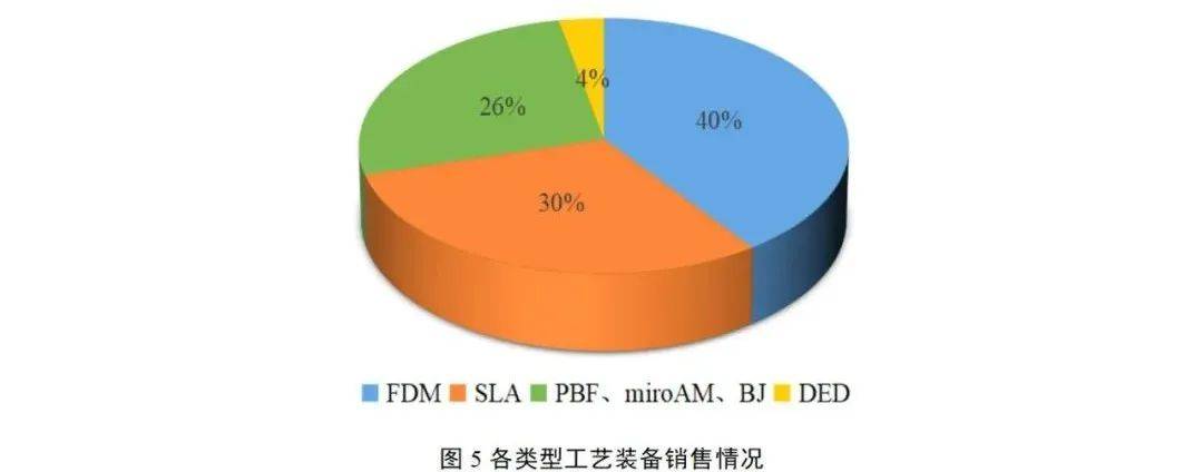 2021年調(diào)研企業(yè)裝備營(yíng)收達(dá)到50.8億元,占總營(yíng)收的55%。其中FDM消費(fèi)級(jí)增材制造裝備營(yíng)收居首位,達(dá)到20.6億元,占裝備營(yíng)收的40%;光固化(SLA)裝備次之,營(yíng)收達(dá)到15.6億元,占裝備營(yíng)收的30%;包括粉末床熔融、微納增材制造和粘結(jié)劑噴射等鋪粉工藝裝備營(yíng)收達(dá)到13.5億元,占裝備營(yíng)收的26%;定向能量沉積(DED)增材制造裝備營(yíng)收僅為1.6億元,占裝備營(yíng)收的4%。