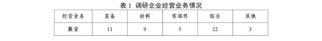 將參與調(diào)研企業(yè)按照經(jīng)營(yíng)業(yè)務(wù)分為增材制造裝備商、材料供應(yīng)商、綜合服務(wù)商(經(jīng)營(yíng)兩種以上業(yè)務(wù))和其他類型。其中綜合服務(wù)商數(shù)量達(dá)到22家,接近半數(shù);專業(yè)從事裝備、材料、零部件生產(chǎn)的商家分別為11家、9家和5家;從事孵化、培訓(xùn)等業(yè)務(wù)的其他類型企業(yè)僅3家,多數(shù)增材制造企業(yè)已發(fā)展成材料、裝備、服務(wù)等業(yè)務(wù)結(jié)合于一體的綜合供應(yīng)商。