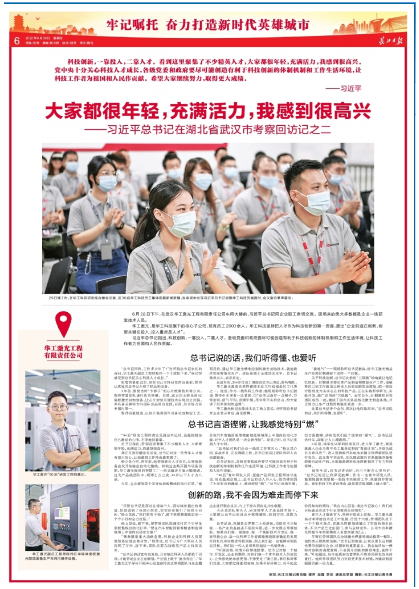 6月28日,習(xí)近平總書(shū)記在湖北省委書(shū)記王蒙徽、省長(zhǎng)王忠林陪同下,來(lái)到華工科技子公司武漢華工激光工程有限公司考察,在公司全體員工中引發(fā)熱烈反響,大家紛紛表示:“將深入踐行習(xí)近平總書(shū)記考察時(shí)的重要講話精神,踔厲奮發(fā),為實(shí)現(xiàn)科技自立自強(qiáng)貢獻(xiàn)力量”。人民日?qǐng)?bào)、央視新聞聯(lián)播、央視新聞、湖北日?qǐng)?bào)、湖北電視臺(tái)、長(zhǎng)江日?qǐng)?bào)等多家主流媒體對(duì)華工科技展開(kāi)回訪,并進(jìn)行了全方位、多視角報(bào)道。