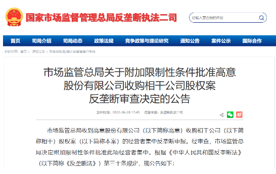 近日,國家市場監(jiān)督管理總局發(fā)布公告稱,決定附加限制性條件批準(zhǔn)II-VI收購Coherent。圖源 國家市場監(jiān)督管理總局網(wǎng)站根據(jù)合并協(xié)議中的條款,在交易完成后,Coherent的每...