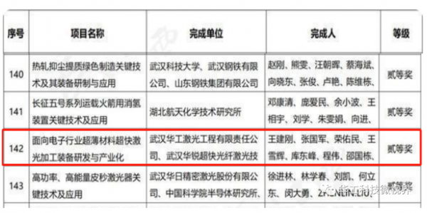 華工激光榮獲2021年度湖北省科學(xué)技術(shù)獎(jiǎng)