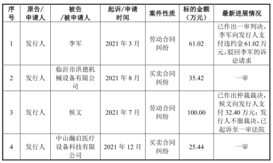 據(jù)招股書披露,宏石激光及其子公司有6起尚未了結(jié)的訴訟或仲裁事項(xiàng)。此外,報(bào)告期內(nèi),宏石激光存在一宗實(shí)用新型專利權(quán)糾紛。