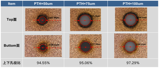 圖2 | 華工激光紫外高速鉆孔設(shè)備通孔效果及孔徑大小展示