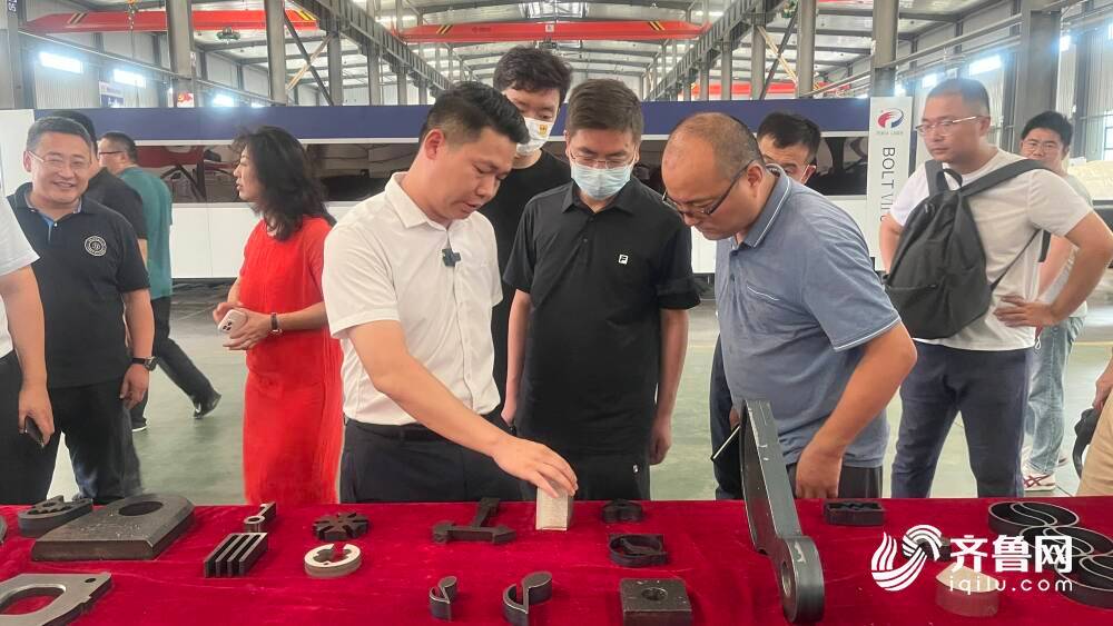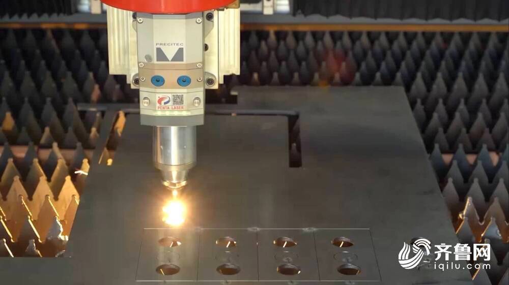 “小到服飾雕花,大到航空航天設(shè)備,從1毫米到100毫米的鋼材,我們的智能化激光切割機(jī)都能切割出來?!痹诒简v激光的生產(chǎn)研發(fā)車間,奔騰激光科技(山東)有限公司常務(wù)副總經(jīng)理萬熾雄向記者細(xì)數(shù)著不同型號激光切割機(jī)的功能,并展示出通過激光設(shè)備切割出來的不同成品,其中就包括激光切割而成的山東廣播電視臺臺標(biāo)。他表示,一塊鋼板經(jīng)過調(diào)試機(jī)器、設(shè)定參數(shù)、擺放材料,無論是一個(gè)精密的機(jī)械零部件,還是特定造型的標(biāo)志,十幾秒的工夫就能切割出來。