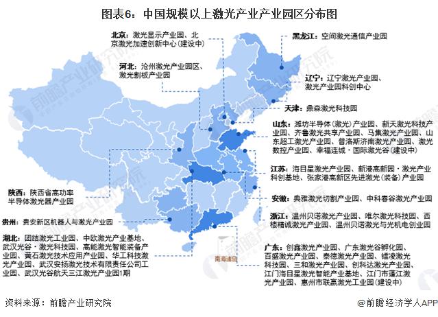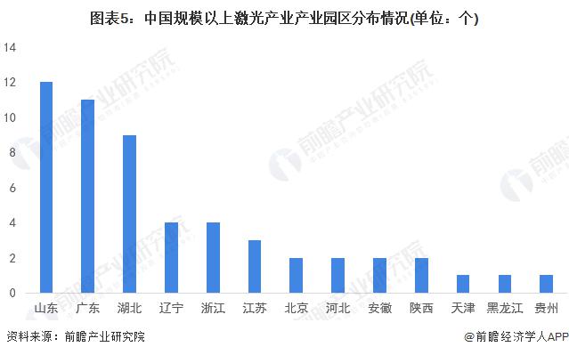 激光產(chǎn)業(yè)產(chǎn)業(yè)園區(qū)分布圖:我國激光產(chǎn)業(yè)園區(qū)集中在魯、粵、鄂