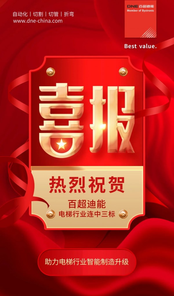 近日,百超迪能喜訊不斷,為金九銀十的黃金期開了一個好頭。瑞士百超集團全資子公司百超迪能激光在奧的斯機電電梯(重慶)有限公司、菱王電梯有限公司廣日供應(yīng)鏈管理(四川)有限公司的招標(biāo)中,歷經(jīng)層層篩選,憑借智能制造系統(tǒng)化方案解決實力、產(chǎn)品品質(zhì)、售后服務(wù)等綜合優(yōu)勢,在電梯行業(yè)連中三標(biāo)。這標(biāo)志著我司在電梯制造領(lǐng)域又增添了精彩的一筆,也為公司實現(xiàn)高質(zhì)量發(fā)展夯實基礎(chǔ)、積蓄力量。
