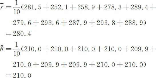 測量系統(tǒng)定位是否準(zhǔn)確是由其對所測點(diǎn) M 到激光雷達(dá)的距離即以激光雷達(dá)為圓心的半徑 r 和方位角 θ 的測量的準(zhǔn)確性共同決定的。為了檢驗測量系統(tǒng)測距和方位角測量的準(zhǔn)確性,在一平面上繪制極坐標(biāo),對測量系統(tǒng)分別進(jìn)行測距和測角兩種情況驗證。