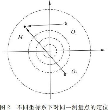 在平面上確定坐標(biāo)原點(diǎn)建立極坐標(biāo)系,那么定位平面上任意一點(diǎn) M 的位置,需要知道 M 的坐標(biāo)(r,θ),即 M 點(diǎn)到原點(diǎn)的距離以及與坐標(biāo)軸的方位角,這樣通過得到 M 點(diǎn)相對坐標(biāo)系原點(diǎn)的位置信息而達(dá)到對 M 點(diǎn)的定位。
