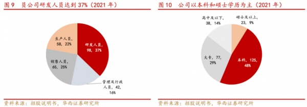 公司憑借專業(yè)的技術水平打破了外資壟斷的市場格局,積攢了雄厚的技術實力。2021年公司研發(fā)人員占比達37%,本科和碩士學歷人員占比達70%以上,公司技術與研發(fā)人員儲備充足,為公司發(fā)展提供持續(xù)動力。