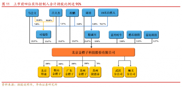 上市前四位實際控制人合計持股比例近90%。截至2021年12月31日,馬會文、呂文杰、邱勇和程鵬先生合計直接持有公司66.98%股權,并通過可瑞資、精誠至控制公司22.63%股權,四人合計控制公司89.61%股權,并已簽訂《一致行動協(xié)議》,為公司的控股股東和實際控制人。其中2016年設立的精誠至為公司的員工持股平臺。
