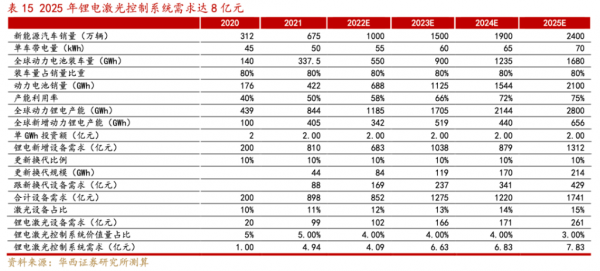 光伏激光設備對振鏡需求預計至少達3億元以上。保守假設2025年光伏(電池片+組件)激光設備市場規(guī)模達80億元,按照振鏡控制系統(tǒng)4%的價值量占比計算,2025年光伏激光設備需求或達3.2億元。