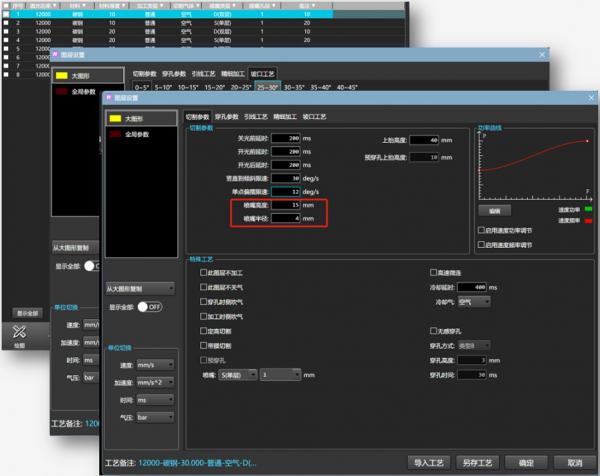 坡口專屬工藝庫管理,支持坡口高度、噴嘴半徑設(shè)置;自動補償,無需二次測量,大大提高效率,節(jié)約資源。