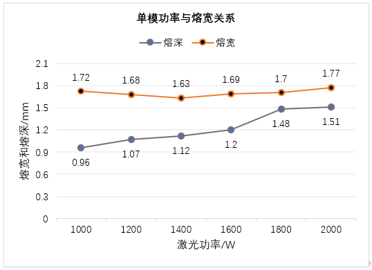 測(cè)試熔深與熔寬的隨激光功率的變化情況